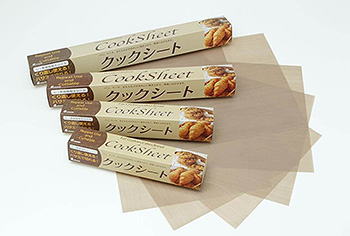 불소수지제 쿠킹시트입니다. 열에 강해서 요리가 눌어붙는 일이 없습니다. 유리 크로스가 기재이므로 잘 찢어지지 않고 여러 번 씻