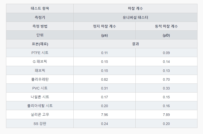 불소수지는 마찰계수가 낮아 모든 고형물 중에서 가장 우수합니다.